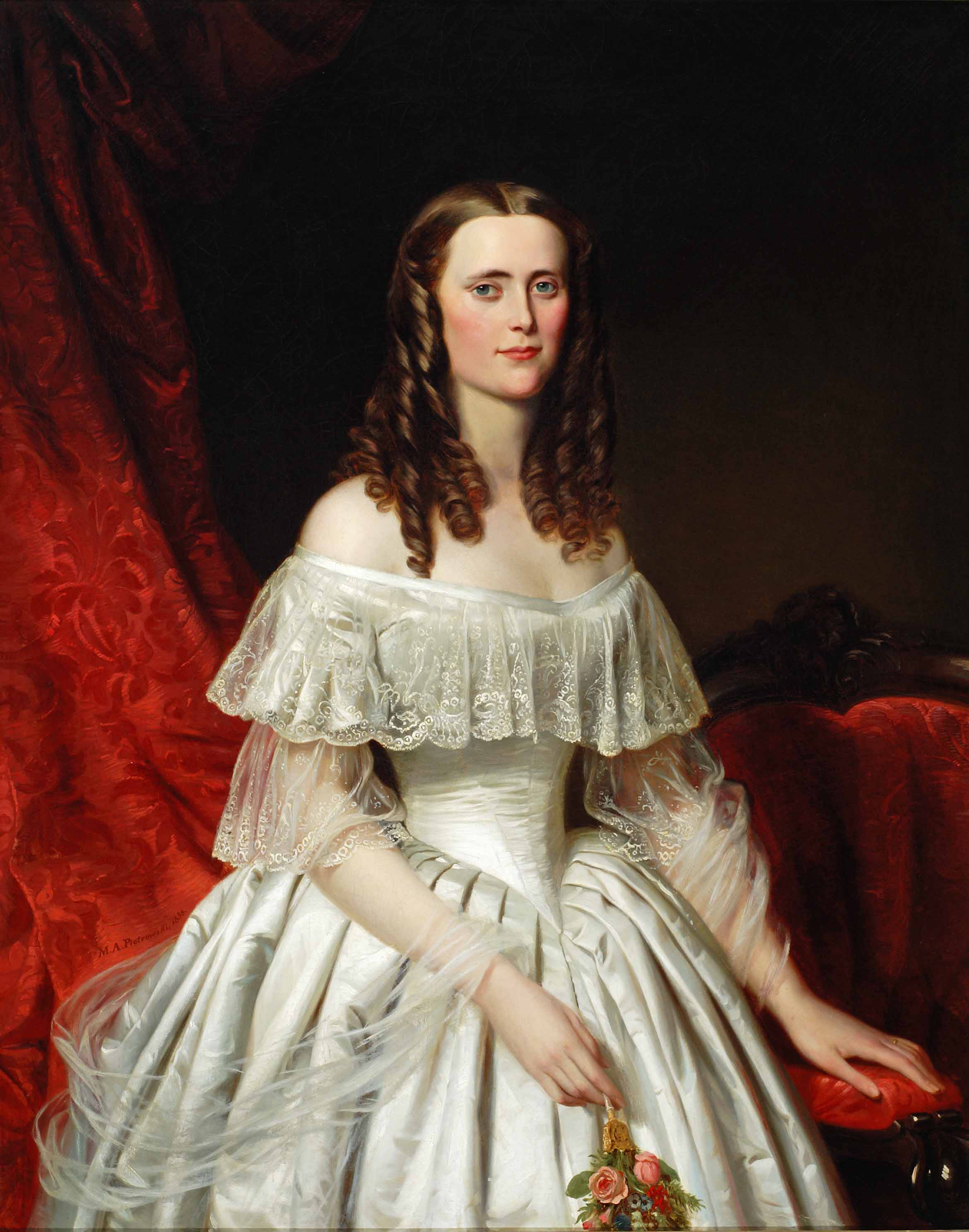 Maksymilian Antoni Piotrowski, „Portret damy w białej sukni”, 1858